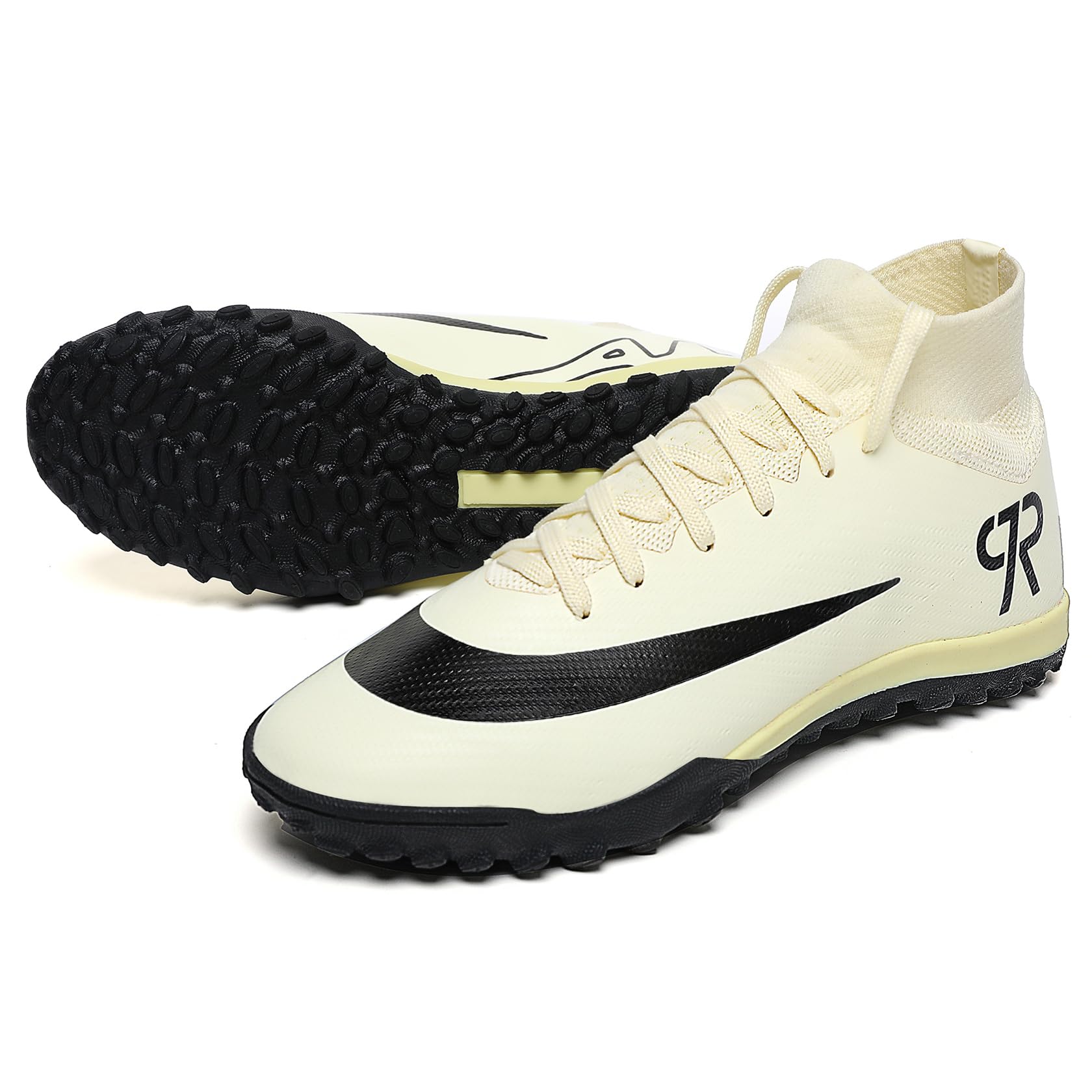 Boys Soccer Shoes Turf Youth Soccer Cleats Kids Spike TF High-Top Football Boots for Outdoor Training Beige Black Size 5