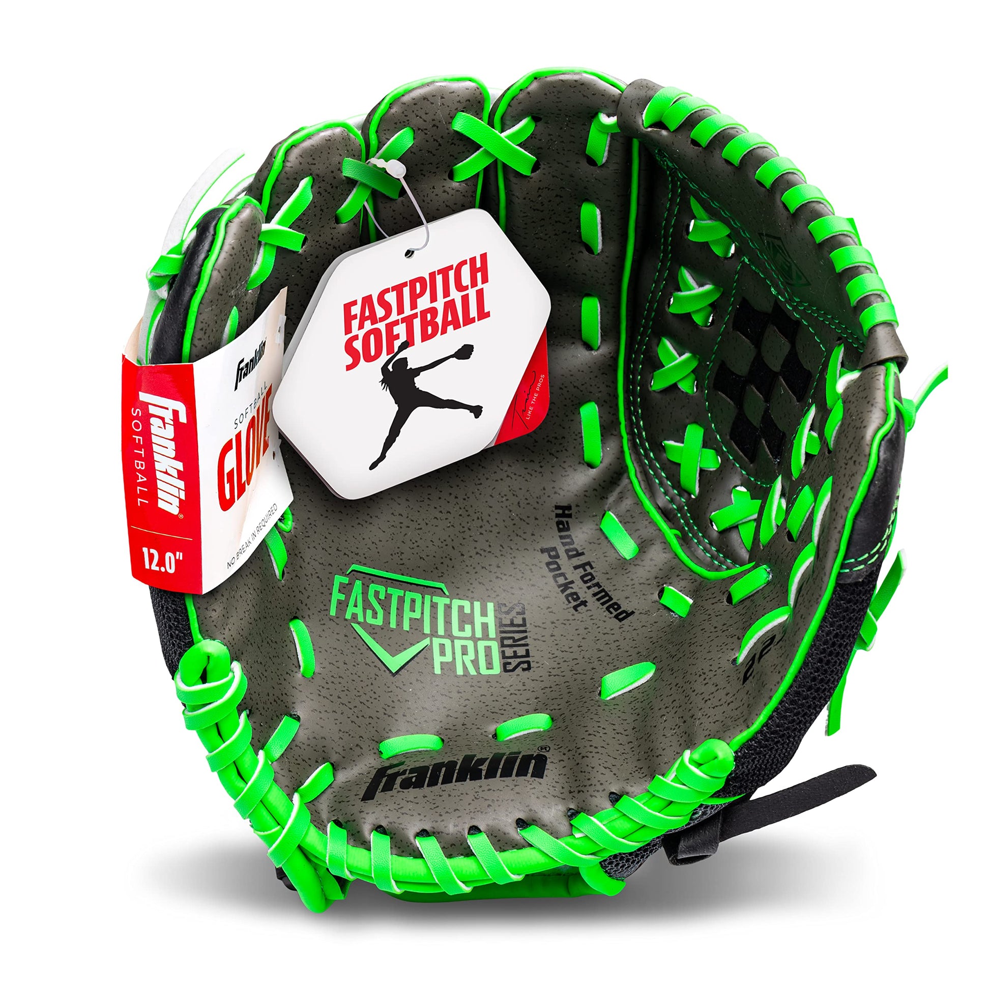 Franklin Sports Girls Softball Glove - Women's Windmill Fastpitch + Slowpitch Softball Glove - Green Mitt - Left Hand Throw Adult + Youth - 12"