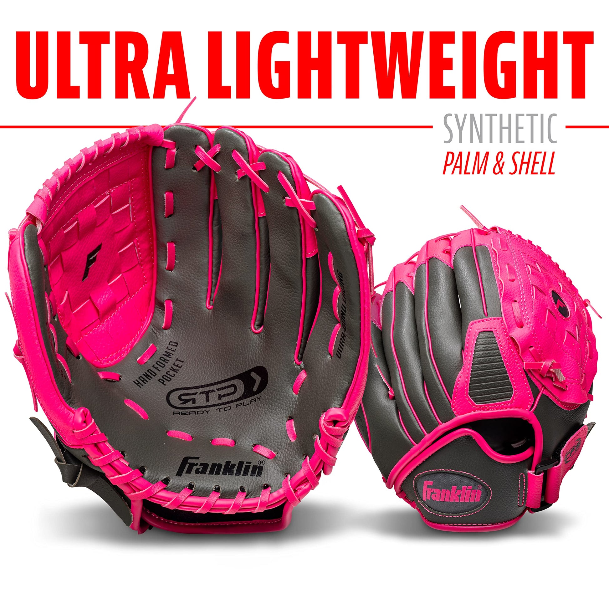 Franklin Sports Kids Baseball Gloves - RTP Child's Tee Ball Glove + Ball Set - Boys + Girls Tee Ball Mitt - Kid + Toddler - Right Hand Throw - Pink - 10.5"