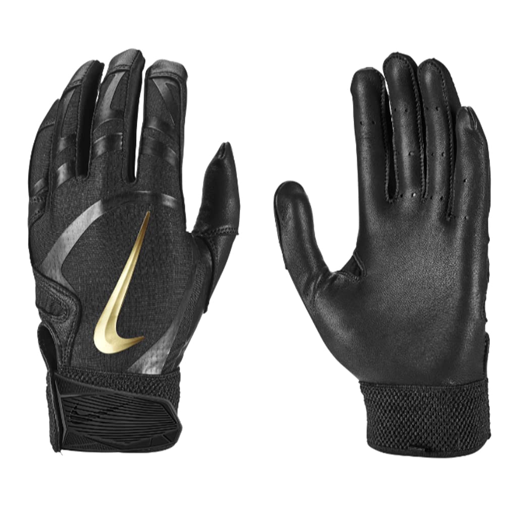 Nike Huarache Elite Adult Batting Gloves - Sheepskin Leather - 1 Pair (Black/Gold, Medium)