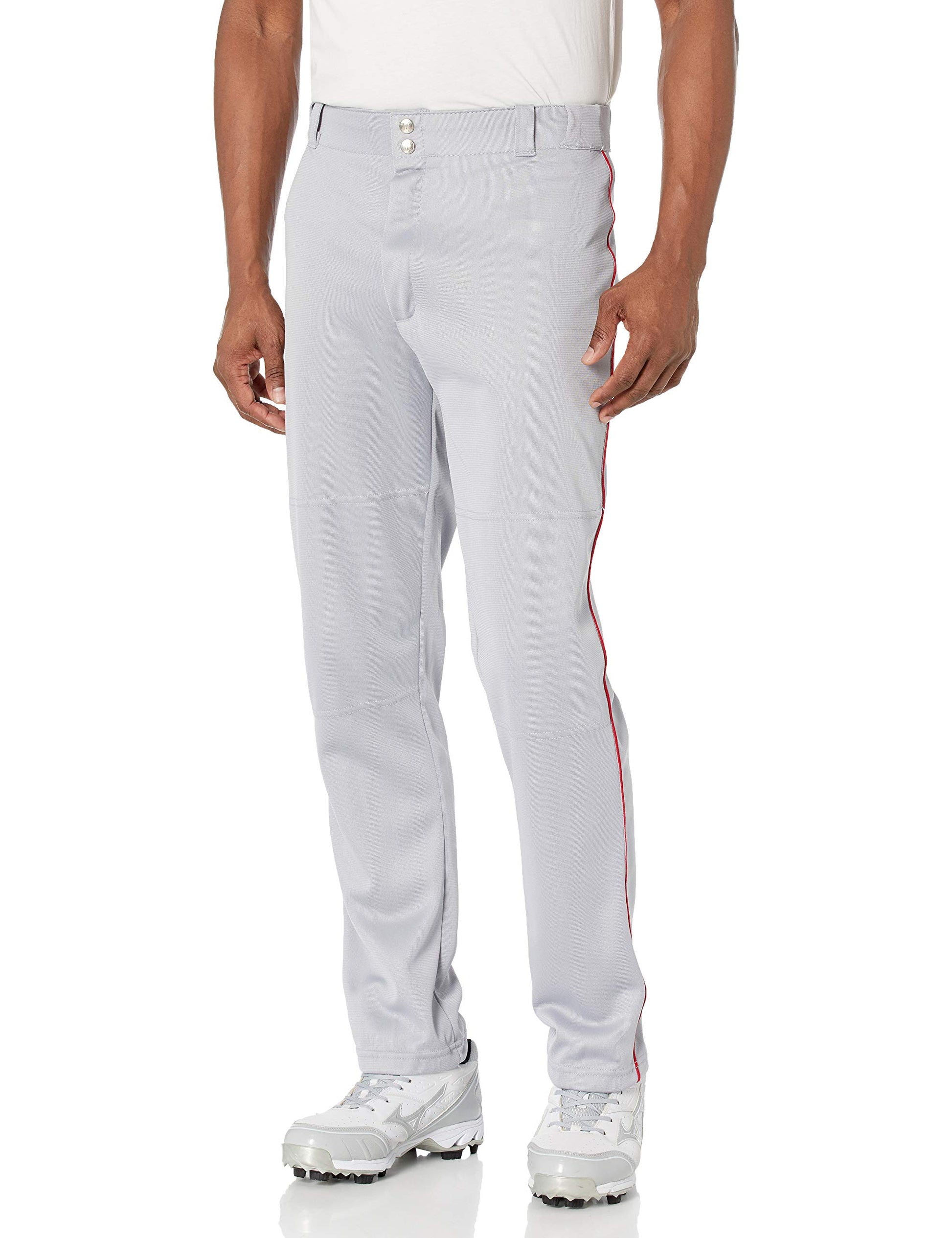 Wilson Men's Classic Relaxed Fit Piped Baseball Pant, Grey/Scarlet, XX-Large